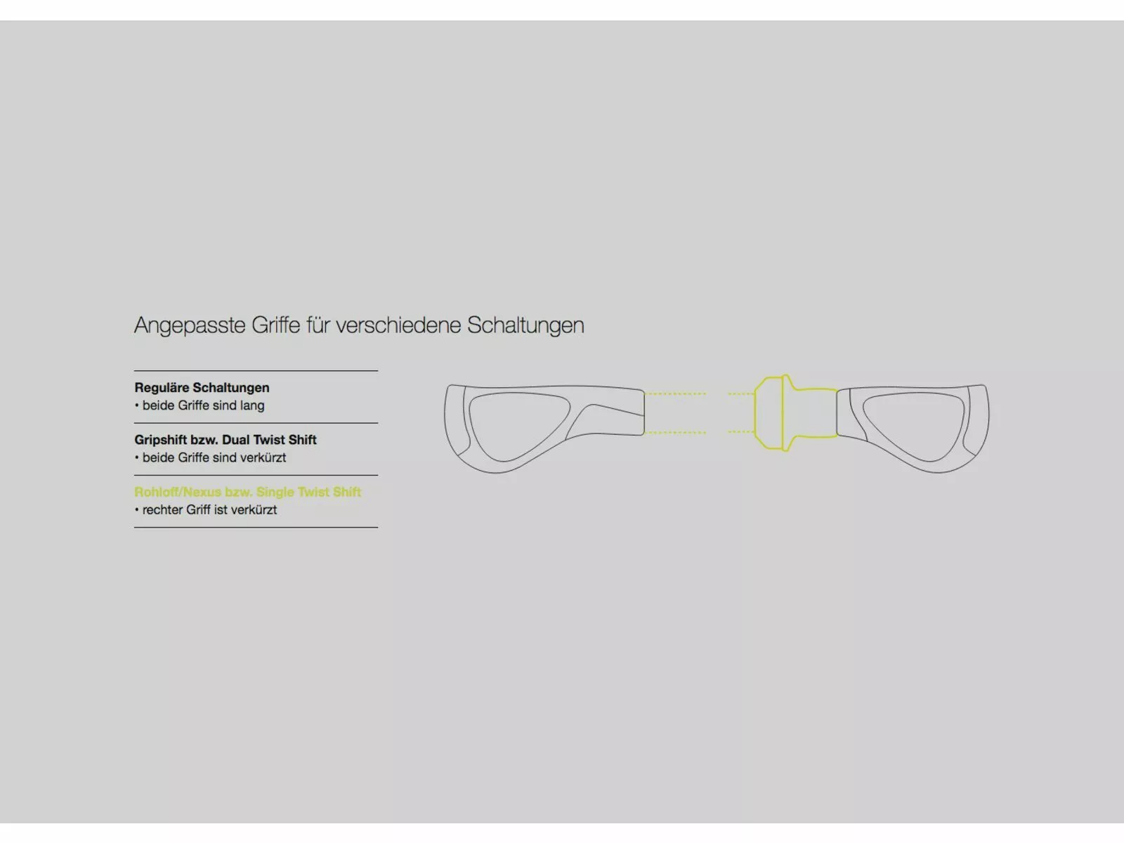 - Single Twist Shift (Rohloff / Nexus): der rechte Griff ist verkürzt