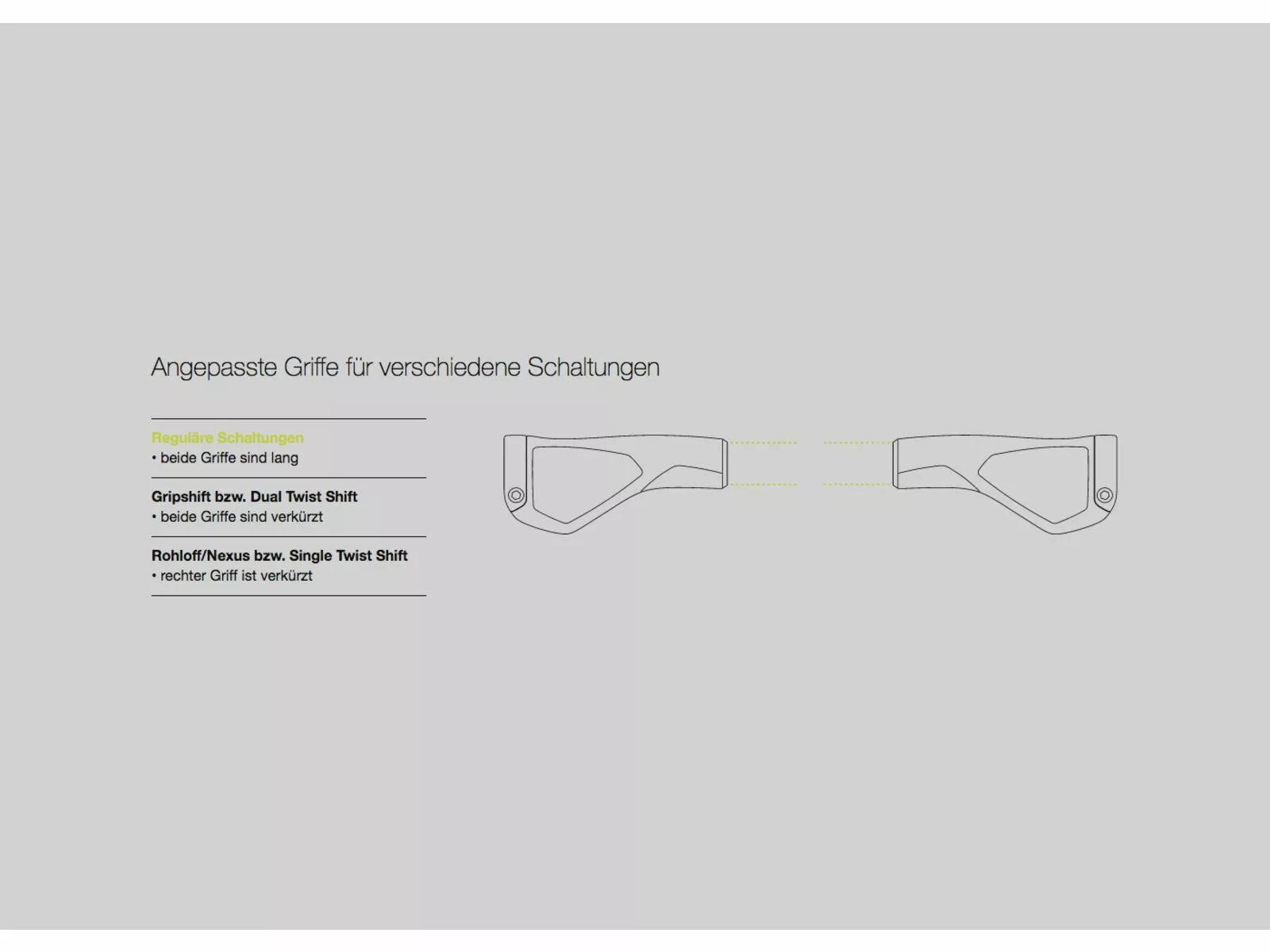 - Standard-Variante (reguläre Schaltungen): beide Griffe sind gleich lang