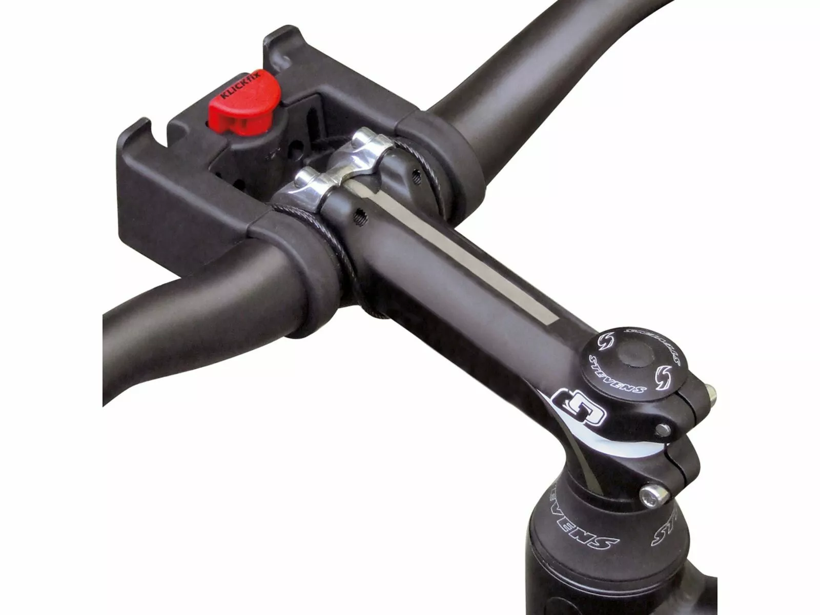 Auch bei schwerem Zubehör sitzt der Adapter durch die patentierte Seilabspannung absolut verdrehsicher und fest am Lenker.