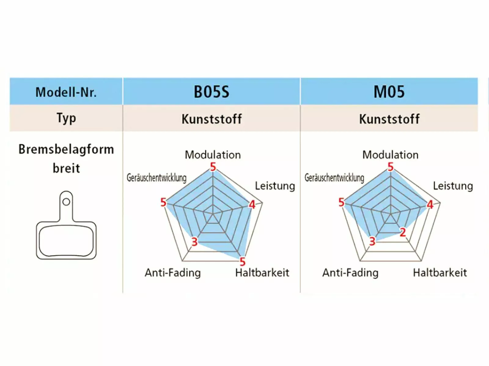 - Neues Belagmaterial aus Kunstharz: Die Haltbarkeit des Kunststoffbelags wurde um 40 % gegenüber MJ19 (3. Generation) gesteigert. Darüber hinaus wurde die Haltbarkeit durch diese Änderung (5. Generation) um weitere 50 % erhöht. Diese Änderung galt nur für die Bremsbeläge für 2-Kolben-Bremssättel. Vorteile: gleichmäßiger und geräuschloser Bremsvorgang / gut abschätzbare Bremskraft